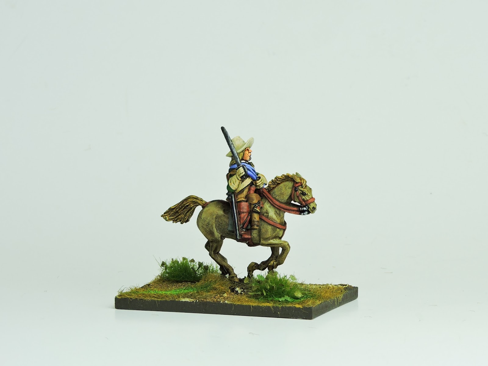 The dress of these 'Harquebusiers' is a mixture of armoured and unarmoured with lobster helmets, soft hats and montero caps. We have charging and resting poses both with swords and pistols.