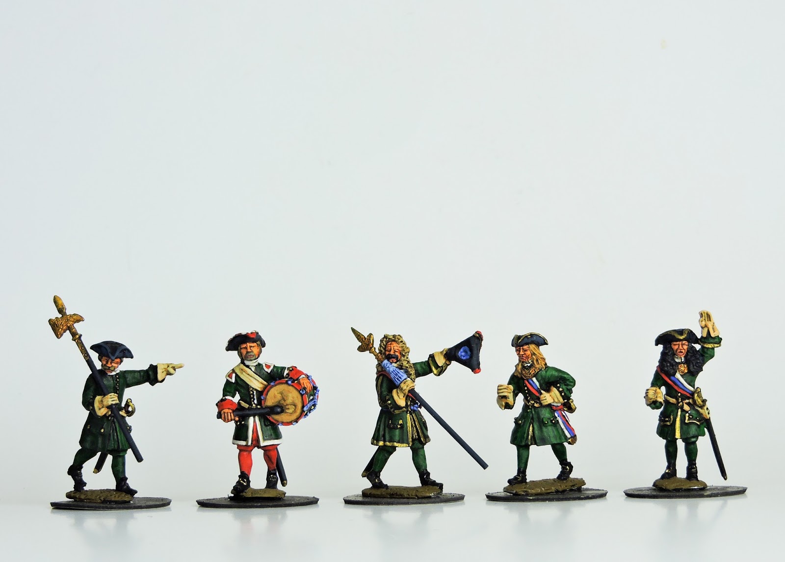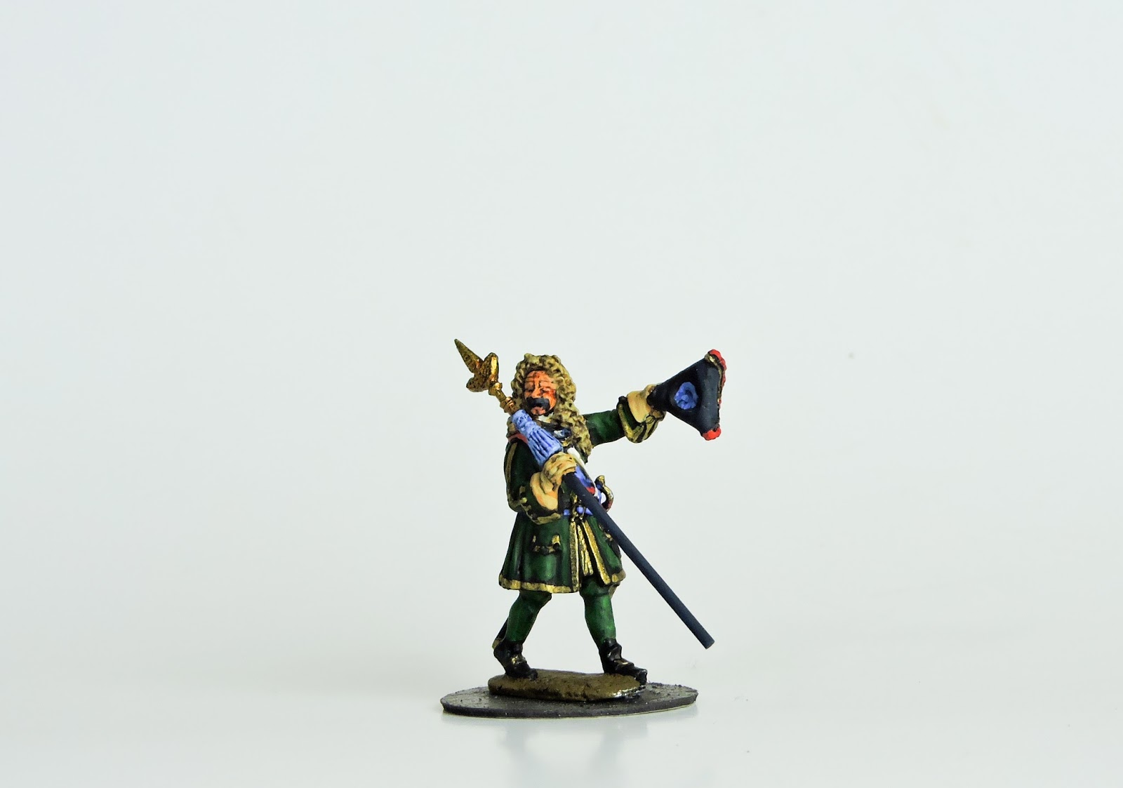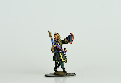 The Colonel/Senior officer has wonderful character and a dramatic pose - 'Send the Swedes back to the Baltic shore!' he appears to shout whilst waving his hat purposefully in the direction of travel. Big wig, nice moustachio (He is probably a German - the mostly were!) He could equally be an Ensign or carry a different polearm. I thought he's look grand with the tasselled spontoon and doesn't he just?