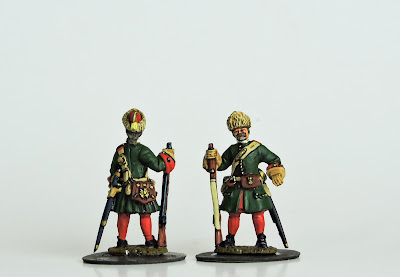 I have included a picture of the test Grenadiers we modelled about two years ago as a comparison. I have cast to order several units of thee mitred chaps for customers. As they are masters they are more expensive but they look nice too.