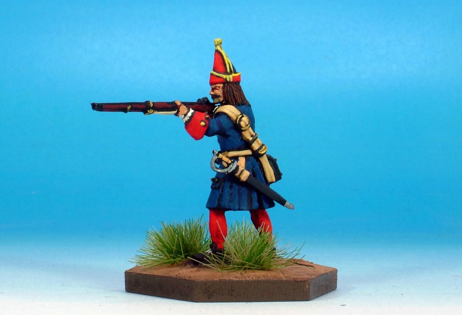 The pose is very natural. The equipment is simple but well detailed. The weapon detail in particular is exceptional as are its proportions relative to the man. I have put on a short sword with no bayonet frog. We intend to modify the equipment to suit.