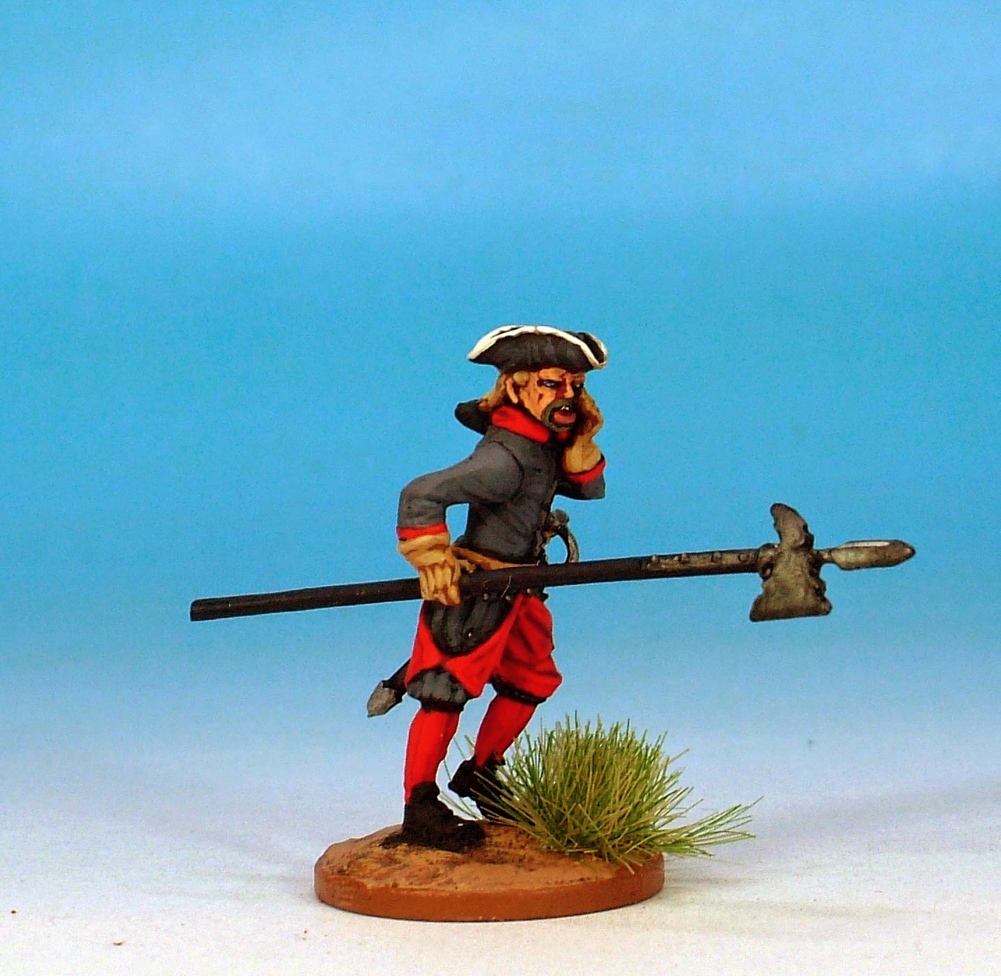 The Sergeant has the look of a real veteran about him. Calling to has men and perhaps encouraging or chiding them. He is open handed and I have chosen to equip him with a traditional sergeant's pole arm.
