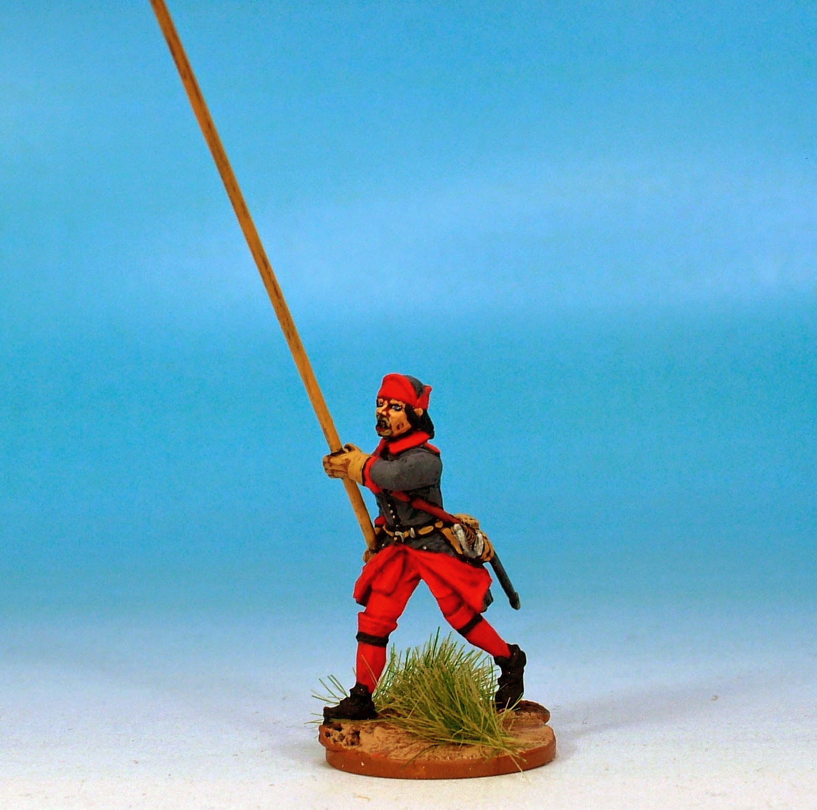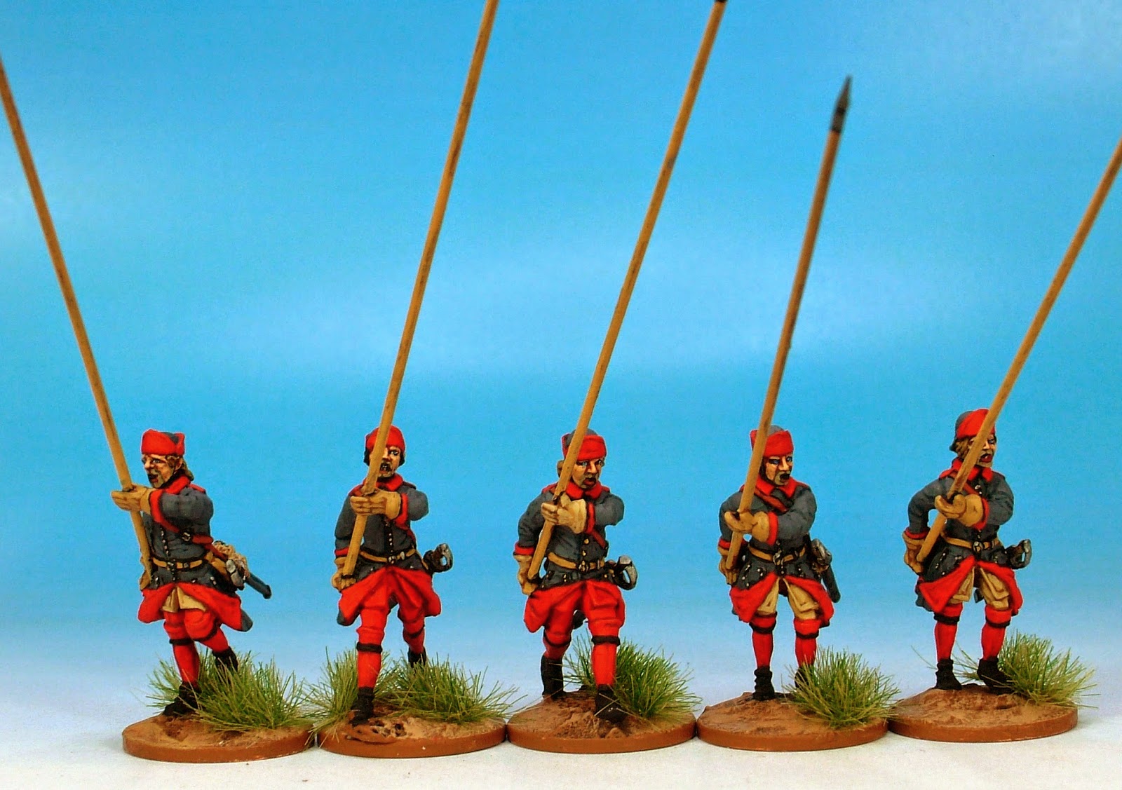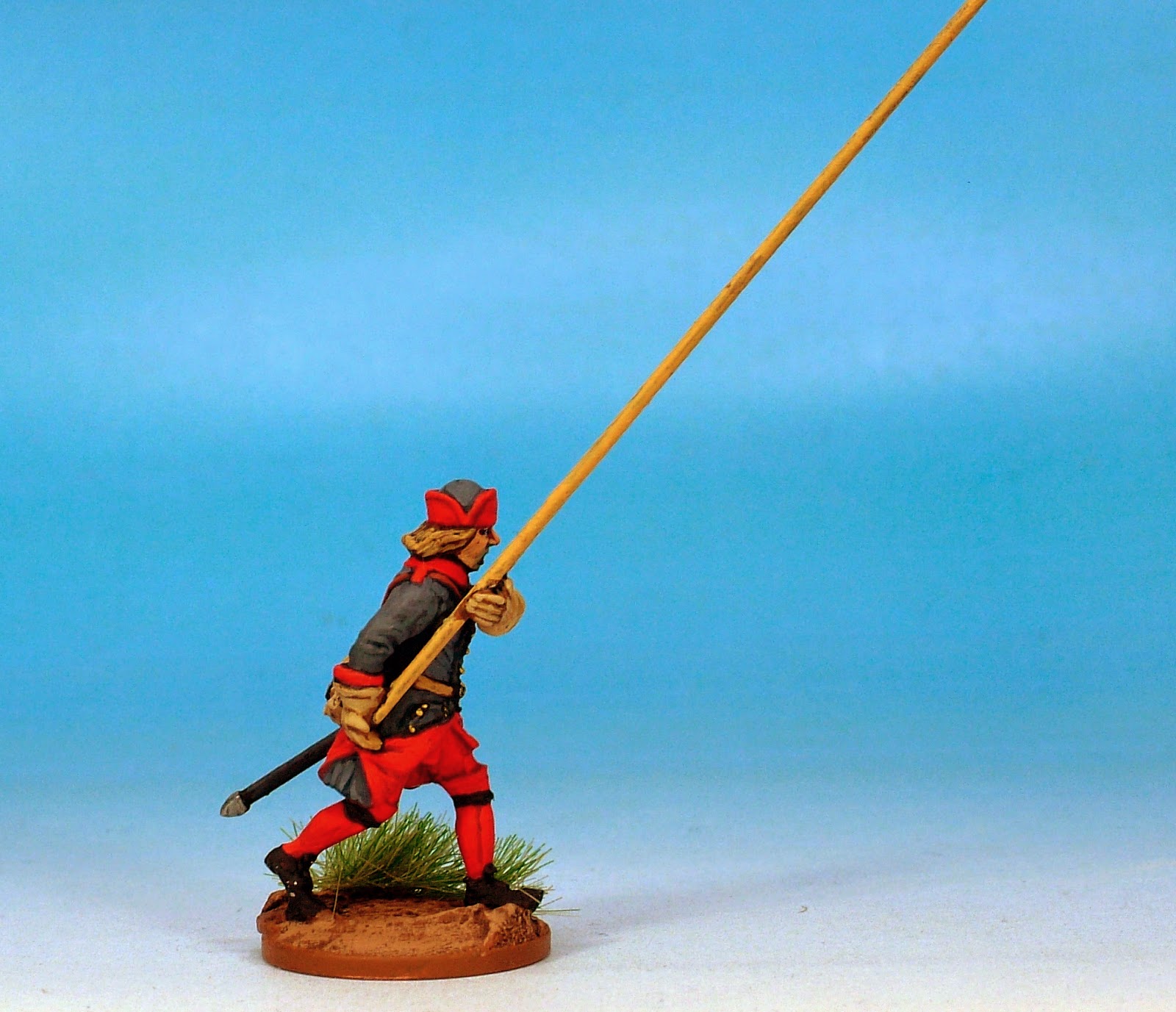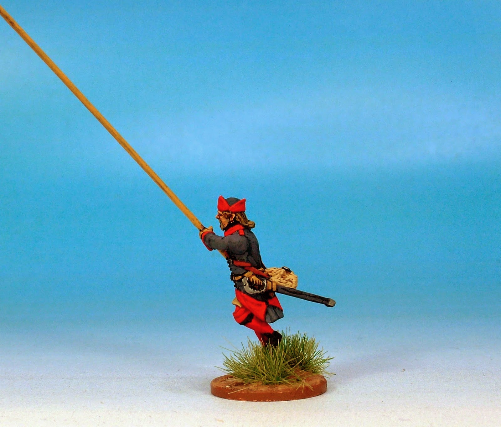 I have chosen a colour combination which can make these chaps represent the Narke-Varmlands Regiment in the period of the war. I have used a rather faded blue based on a Vallejo favourite of mine - Luftwaffe grey -blue. In a slightly nonsensical contrast I have made their red facings rather vivid but it produces a nice effect.
