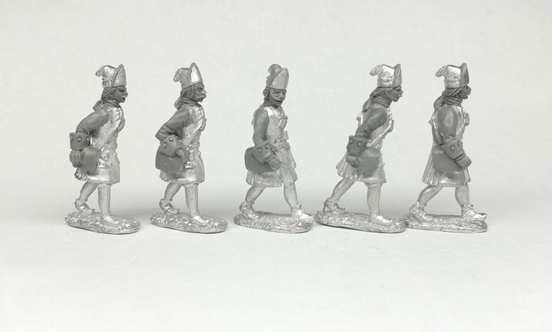 Marching codes are very utilitarian and we have produced 'hatmen' and grenadiers for both nations. The Danes have the characteristic double breasted coat and the Prussians the distinctive belt on the outside and coat drawn back together with the identifiable mitre.