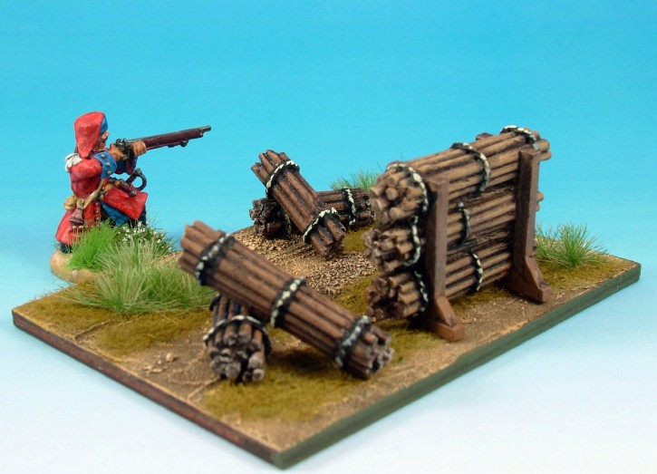 - Large fascine rack with 3 stacked fascines, 2 loose large fascines and 2 loose small fascines