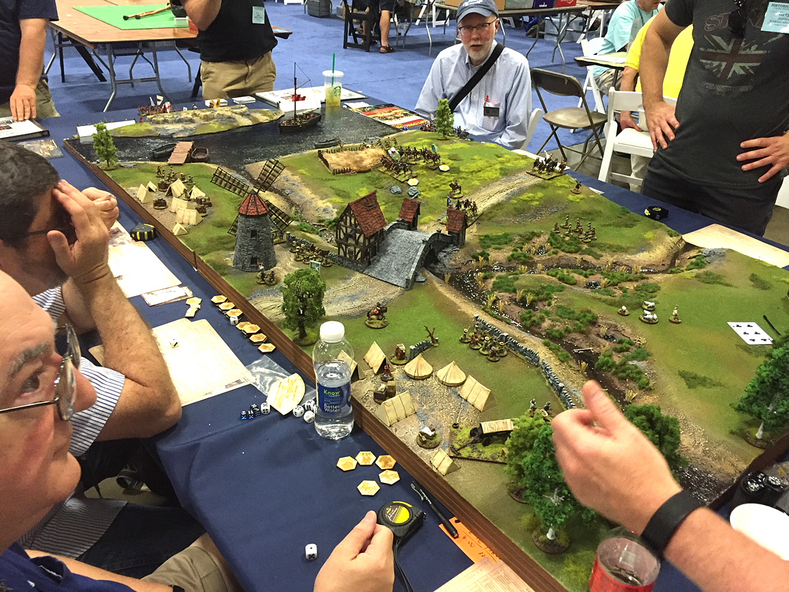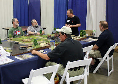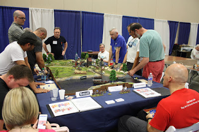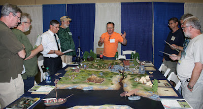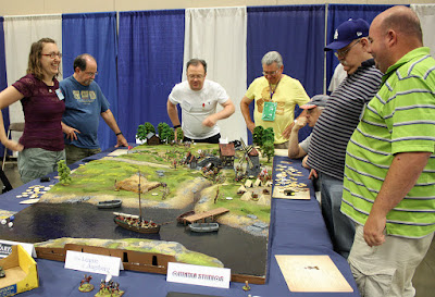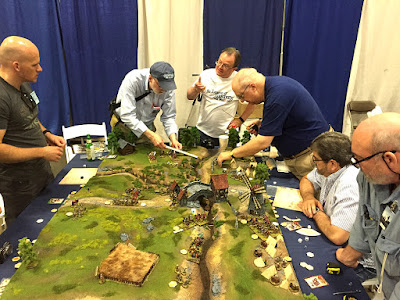 On behalf of myself and the aforementioned Mr. Hilton, thanks to everyone who played in our games. I tried to get photos of each session that included all the gamers, but it's like herding cats! Maybe next time I need to make everyone line up! I also don't seem to have any photos of the pick up game Thursday night when Dan Faulconbridge joined the Jacobite cause. He had to leave a few minutes early (after getting General Maumont killed), but did ask the next day, 'Did we win?' Yes, Dan, you did...