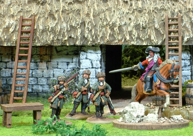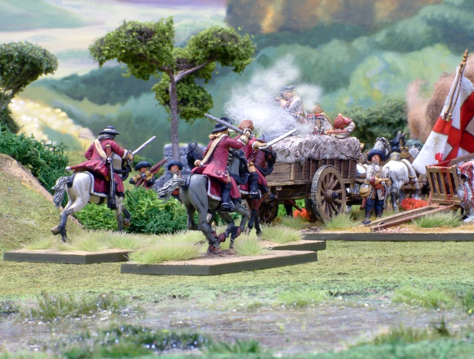 Williamite Dragoons challenges by a Jacobite cavalier |