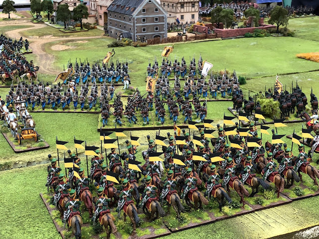 The show was enjoyable but few games really caught my eye. The most attractive was Kev and Peter's Napoleonic Zorndorff reboot with Russians and Prussians of the 1815 era assuming the roles. Some beautiful painting by Kev as always and plenty of troops.